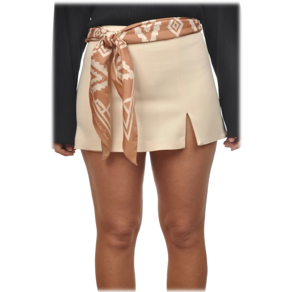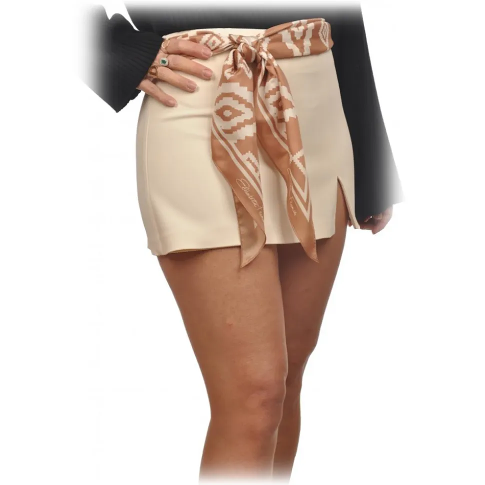 Elisabetta Franchi – Skorts with Pattern Sash – Cream – Trousers – Made in Italy – Luxury Exclusive Collection
