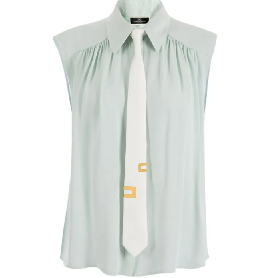 Elisabetta Franchi – Sleeveless Blouse with Tie – Aqua Green – Shirt – Made in Italy – Luxury Exclusive Collection
