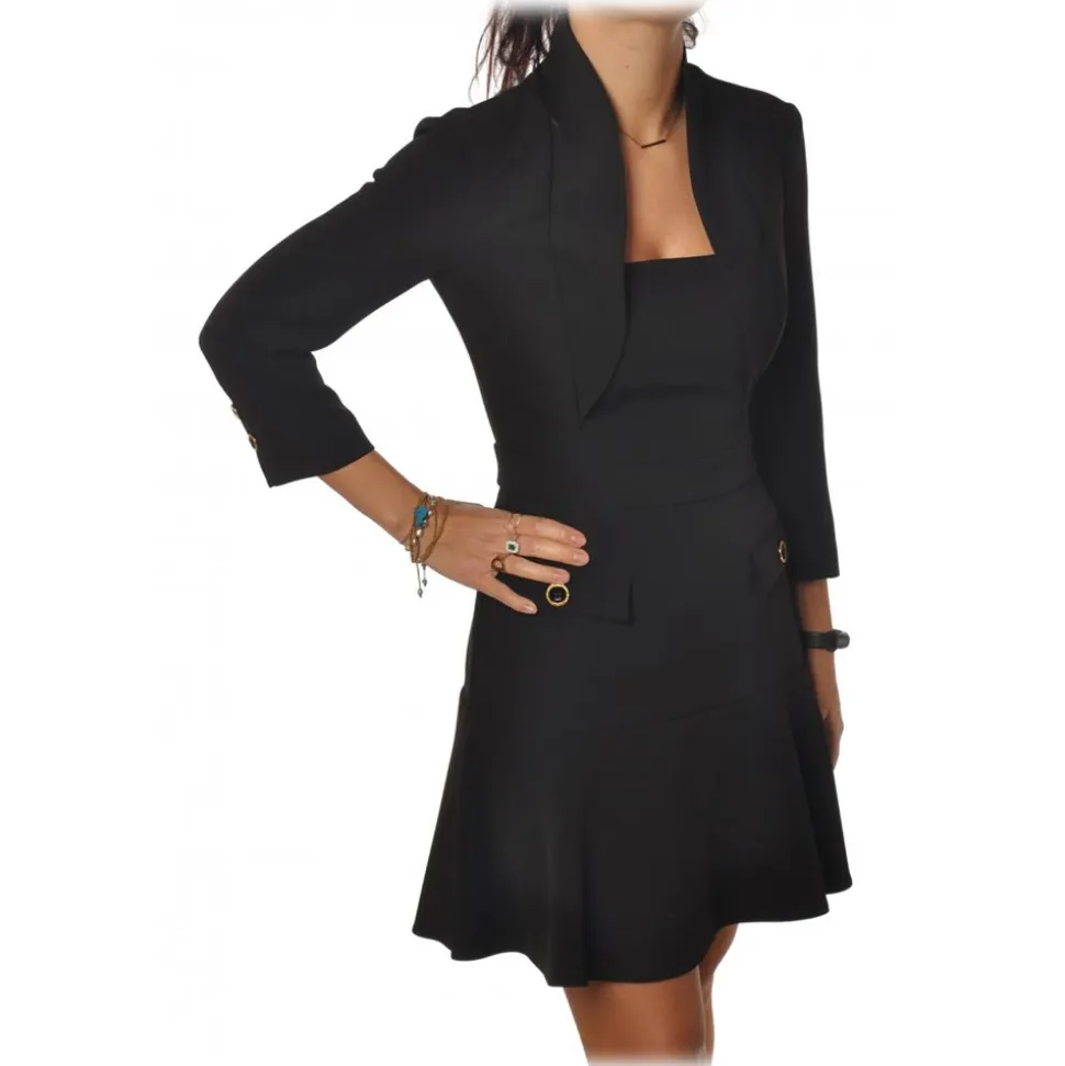 Elisabetta Franchi – Slim Fit Jacket Effect Neckline Dress – Black – Dress – Made in Italy – Luxury Exclusive Collection