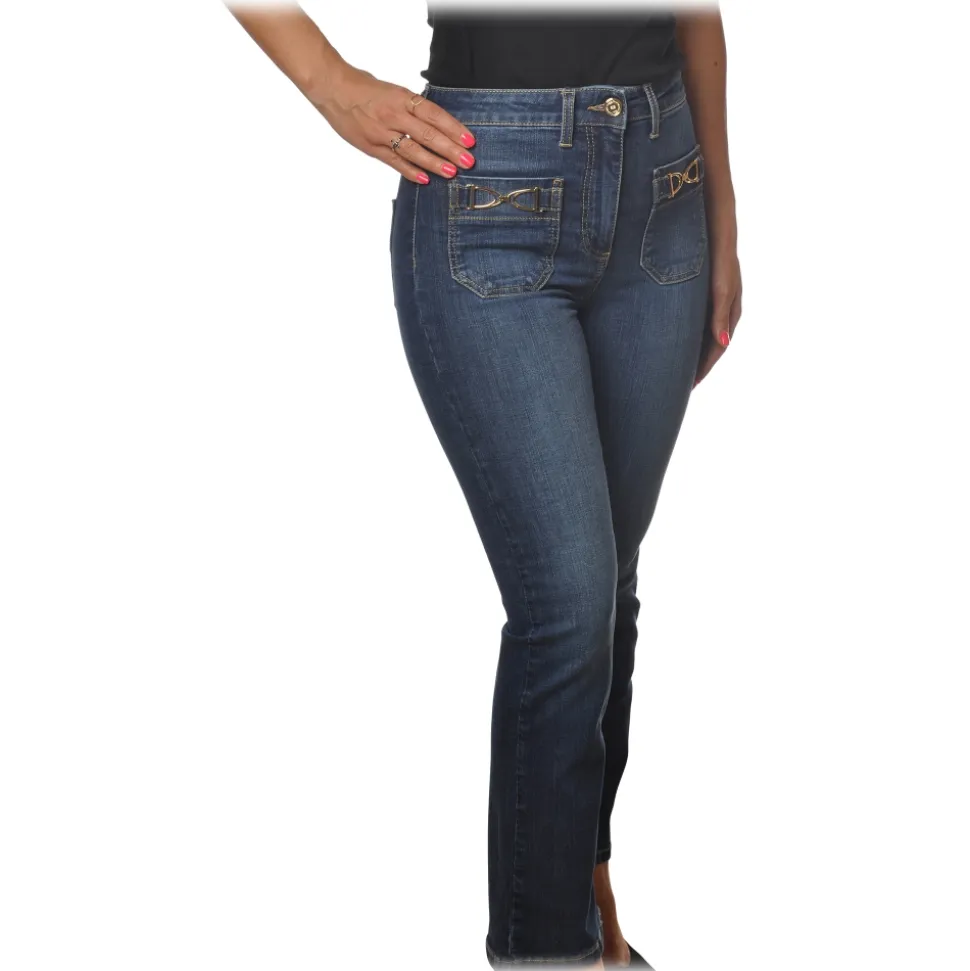 Elisabetta Franchi – Straight Leg Jeans with Patch Pockets – Blue – Trousers – Made in Italy – Luxury Exclusive Collection