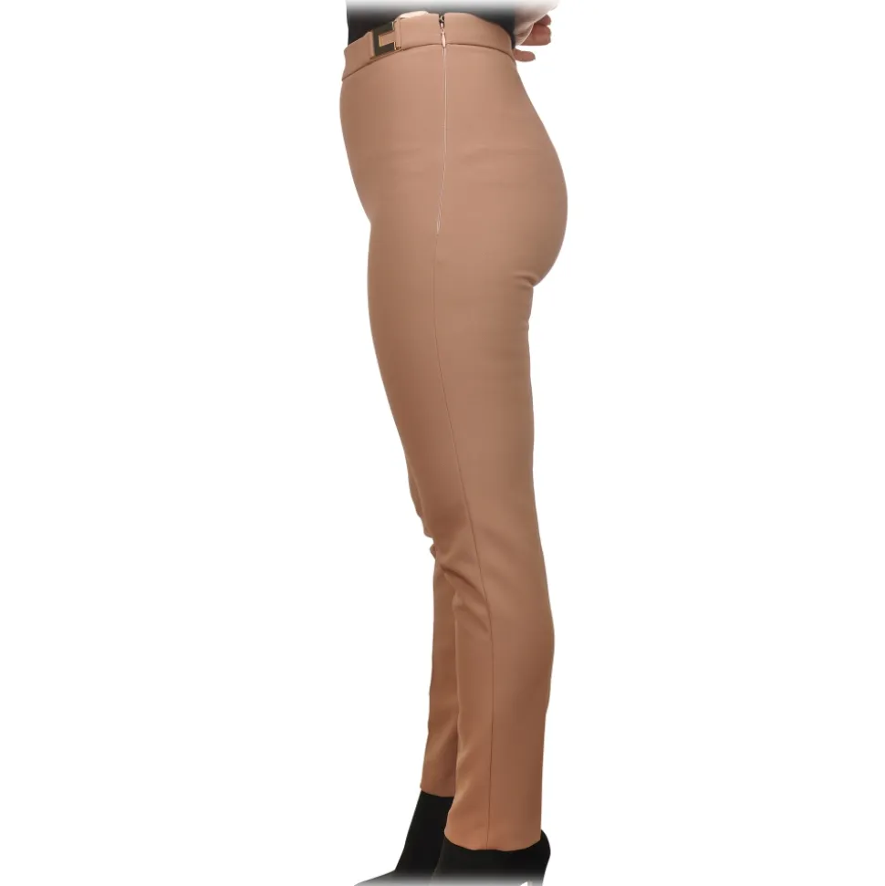 Elisabetta Franchi – Straight Trousers in Technical Fabric – Beige – Trousers – Made in Italy – Luxury Exclusive Collection