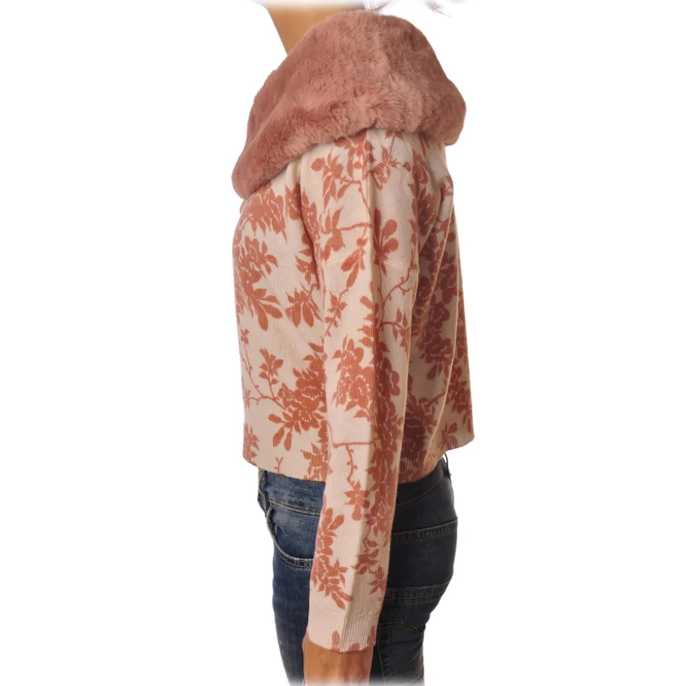 Elisabetta Franchi – Sweater in Pattern with Eco-fur – White/Pink – Pullover – Made in Italy – Luxury Exclusive Collection