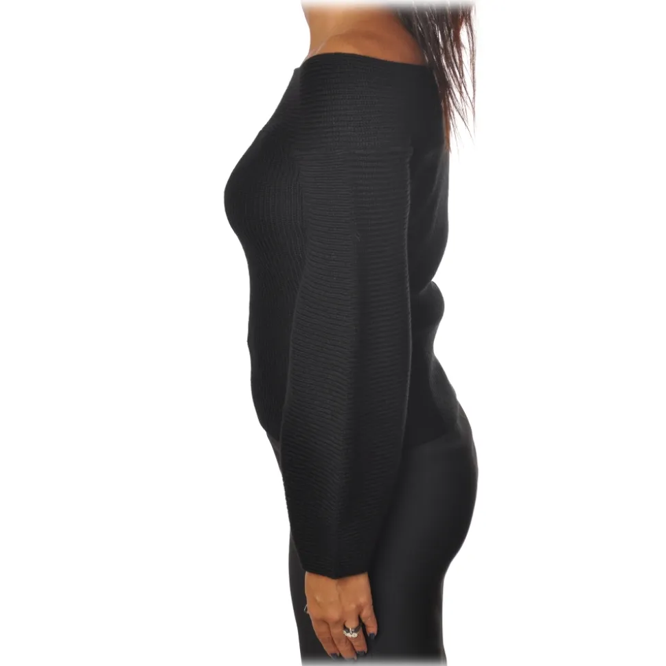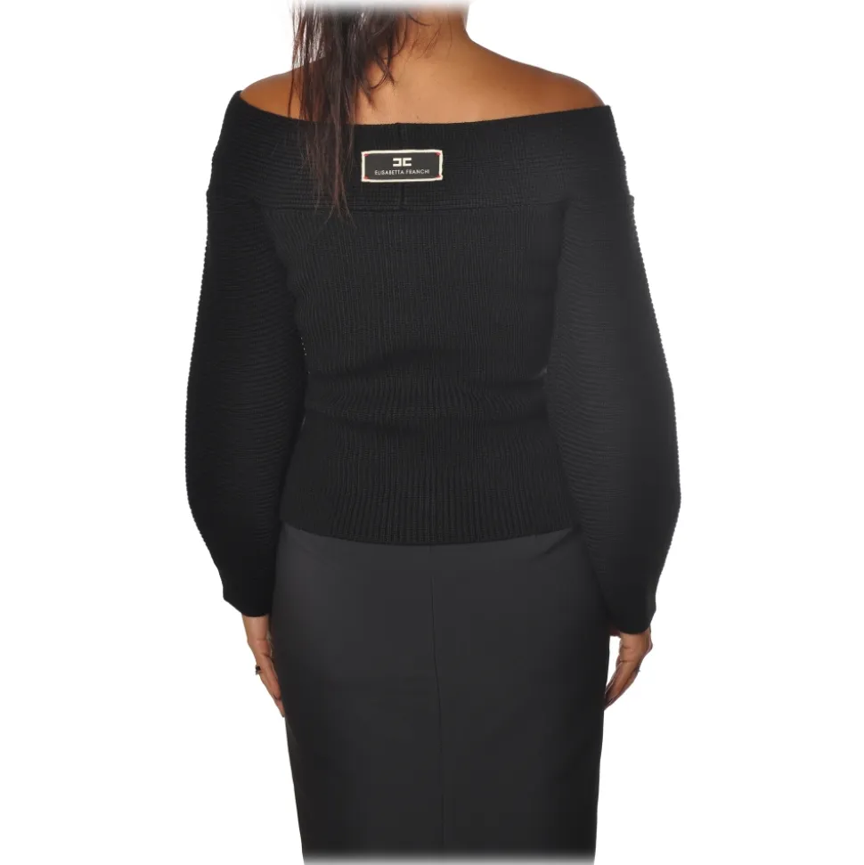Elisabetta Franchi – Wide Sleeve Sweater – Black – Sweater – Made in Italy – Luxury Exclusive Collection