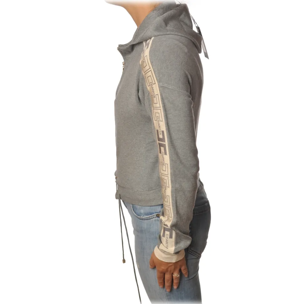 Elisabetta Franchi – Sweatshirt with Logo Profiled Bands – Grey – Sweatshirt – Made in Italy – Luxury Exclusive Collection
