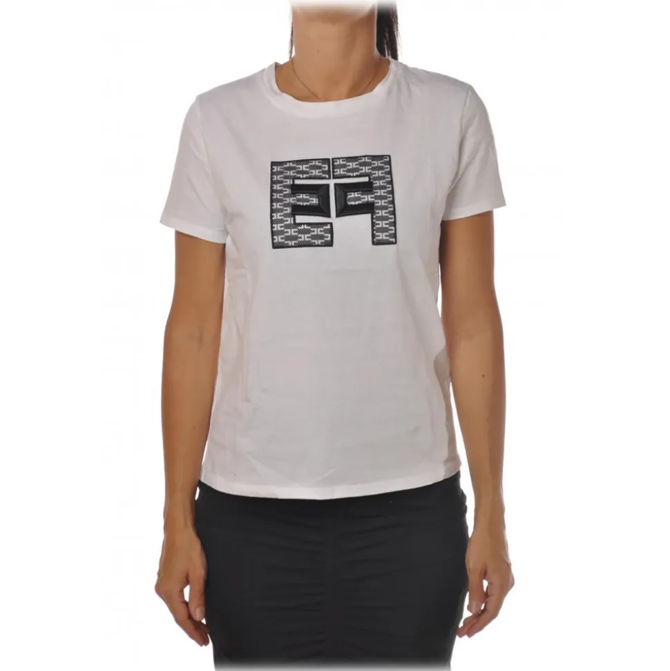 Elisabetta Franchi – T-Shirt with Embroidered Logo – White – T-Shirt – Made in Italy – Luxury Exclusive Collection