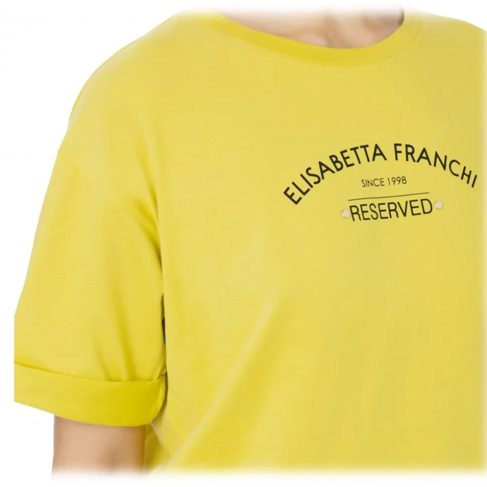 Elisabetta Franchi – T-Shirt with Logo and Metallic Details – Yellow – T-Shirt – Made in Italy – Luxury Exclusive Collection