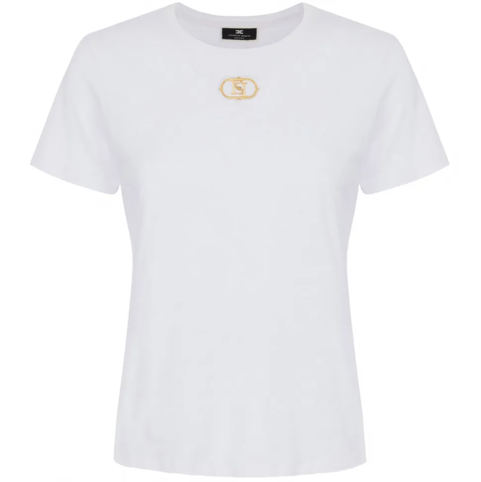 Elisabetta Franchi – T-Shirt with Metal Logo Application – White – T-Shirt – Made in Italy – Luxury Exclusive Collection
