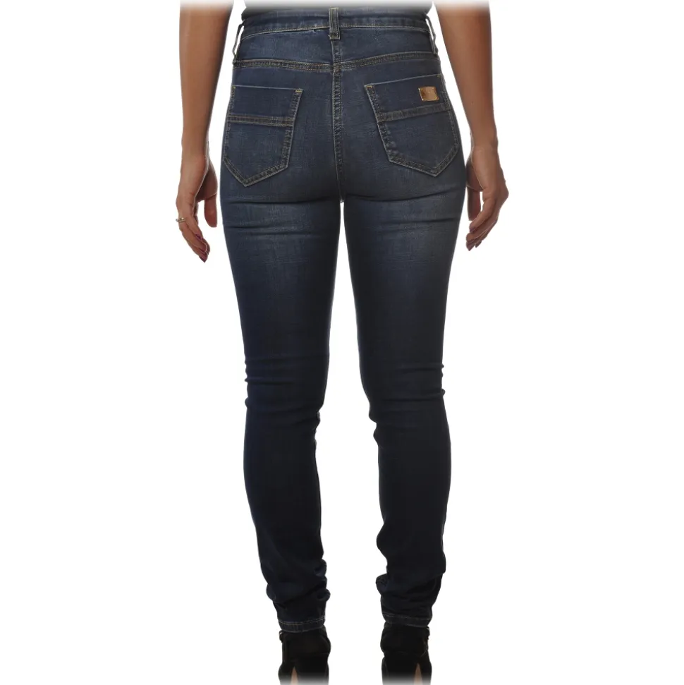 Elisabetta Franchi – Tapered Leg Jeans – Blue Vintage – Trousers – Made in Italy – Luxury Exclusive Collection
