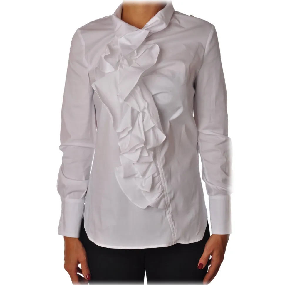 Elisabetta Franchi – Tight Shirt with Ruffles – White – Shirt – Made in Italy – Luxury Exclusive Collection