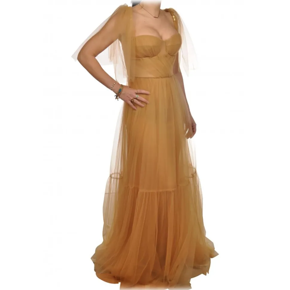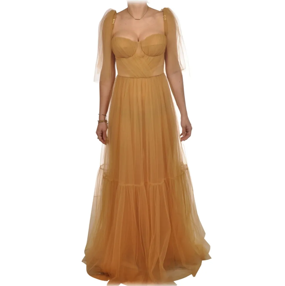 Elisabetta Franchi – Tulle Dress with Bustier – Caramel – Dress – Made in Italy – Luxury Exclusive Collection