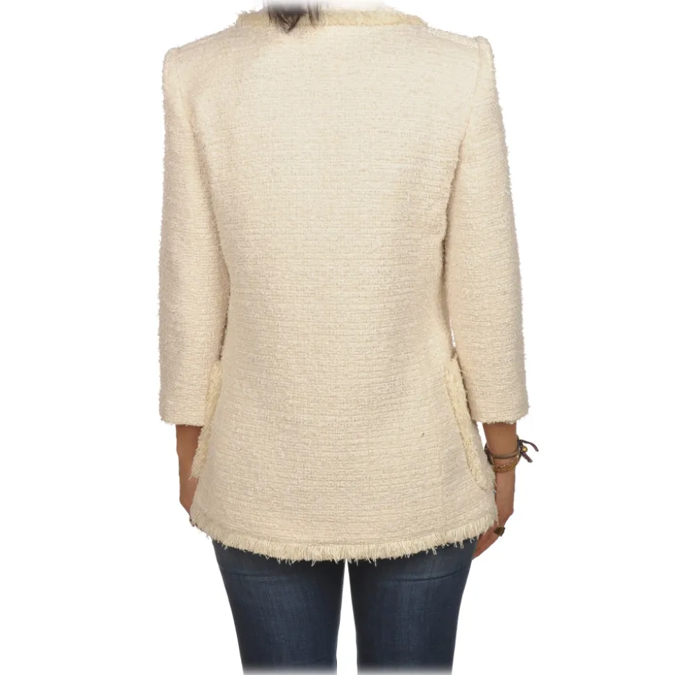 Elisabetta Franchi – Tweed Double-Breasted Blazer – Cream – Jacket – Made in Italy – Luxury Exclusive Collection