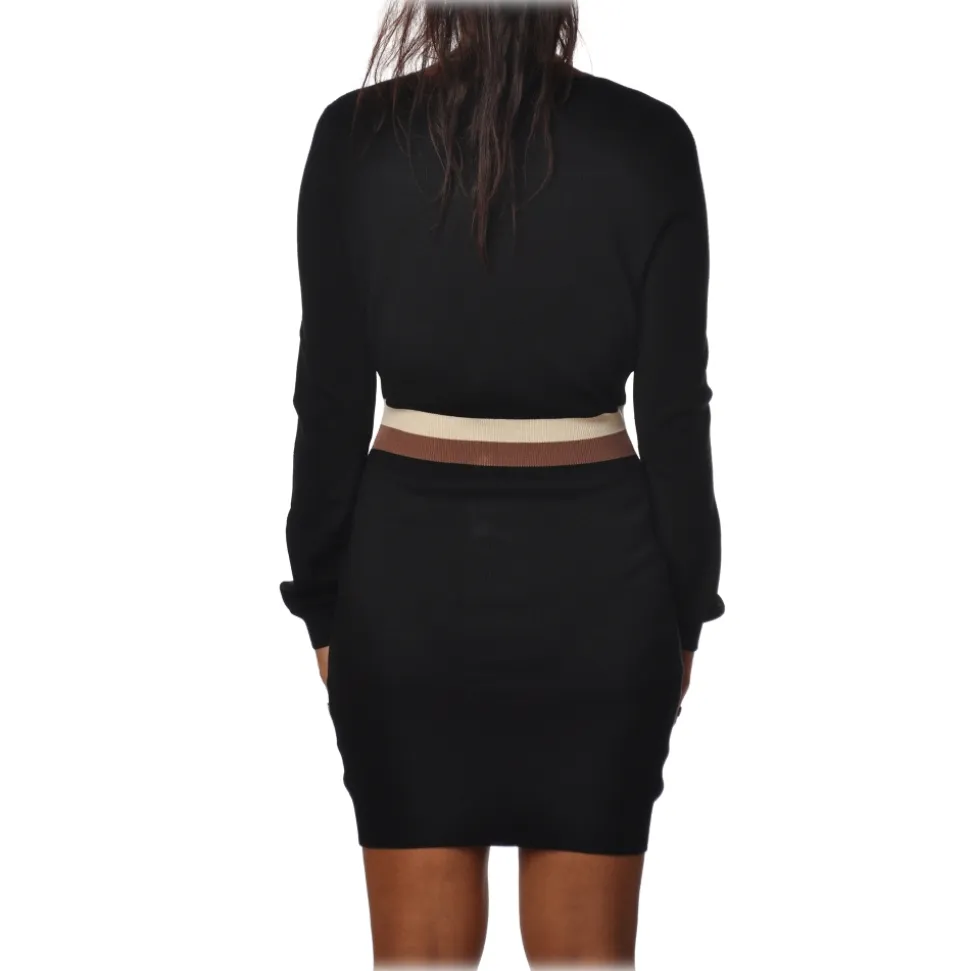 Elisabetta Franchi – V-Neck Sheath Dress – Black – Dress – Made in Italy – Luxury Exclusive Collection