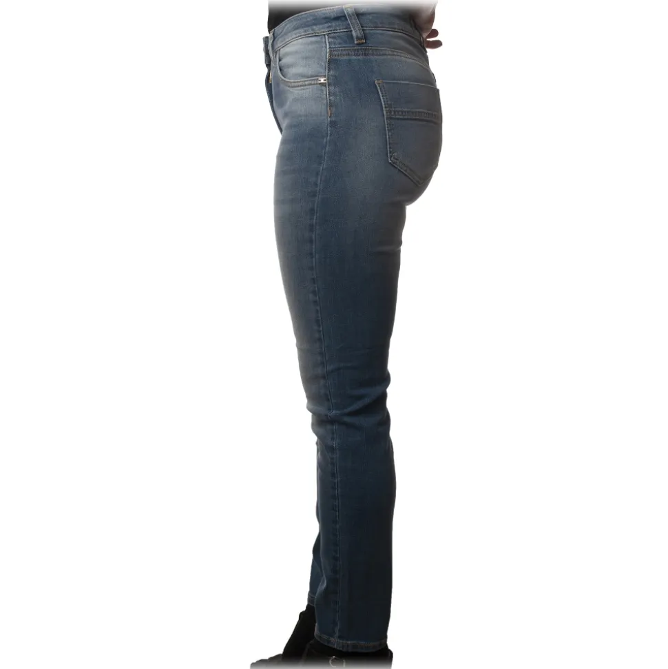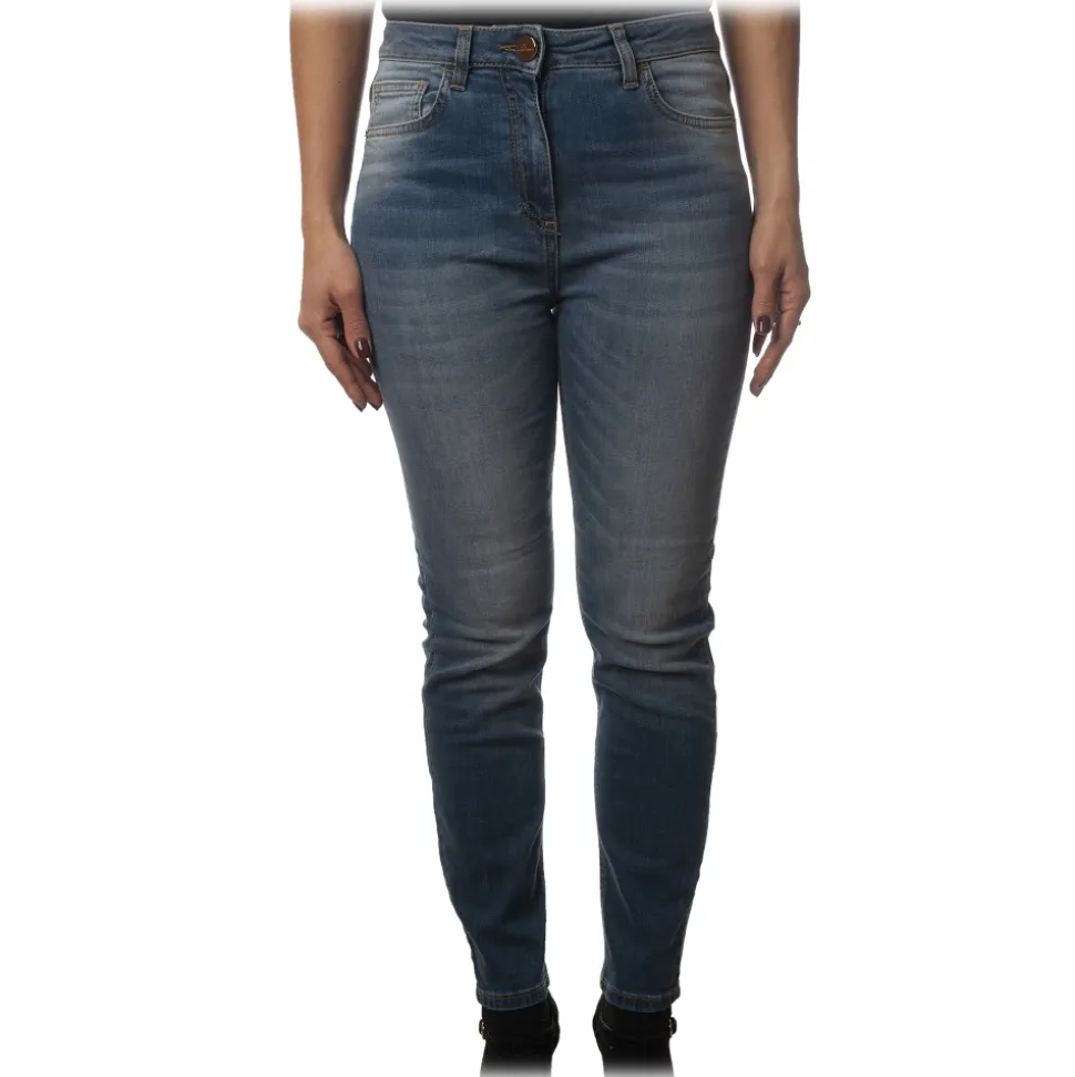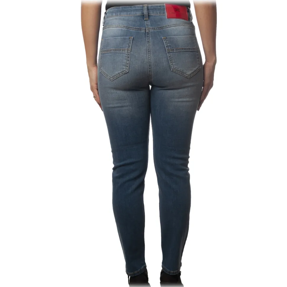 Elisabetta Franchi – Washed Denim Jeans – Blue Vintage – Trousers – Made in Italy – Luxury Exclusive Collection