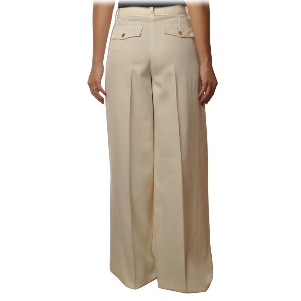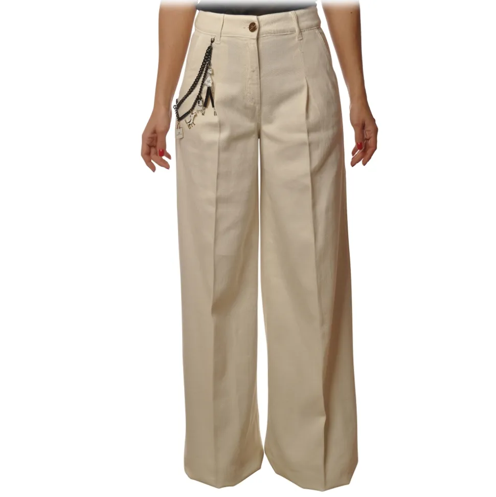 Elisabetta Franchi – Wide Leg Trousers with Chain – Butter – Trousers – Made in Italy – Luxury Exclusive Collection