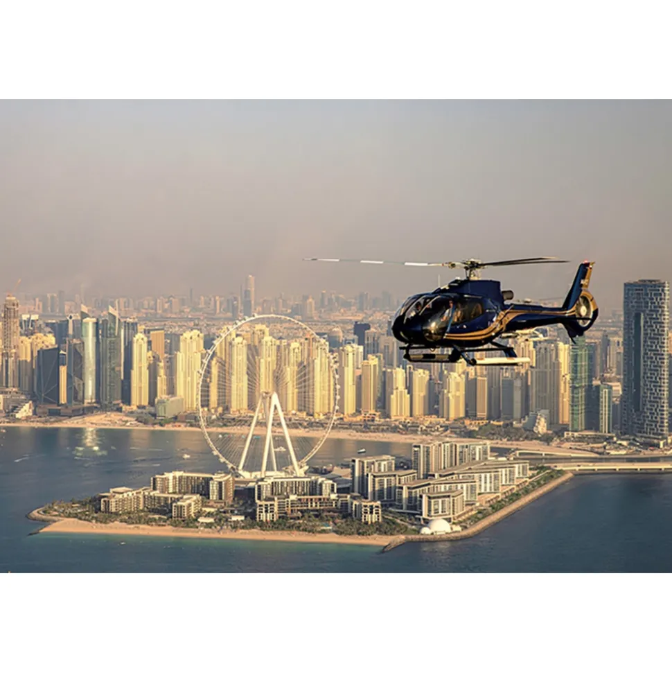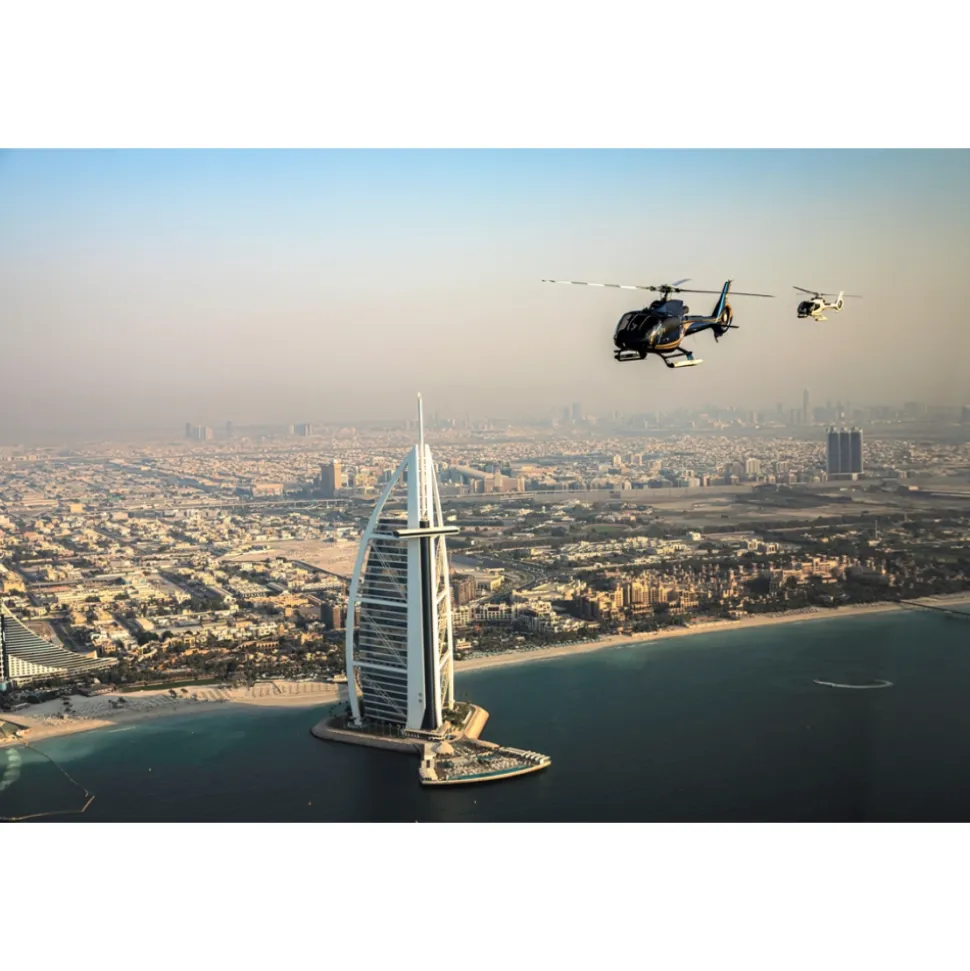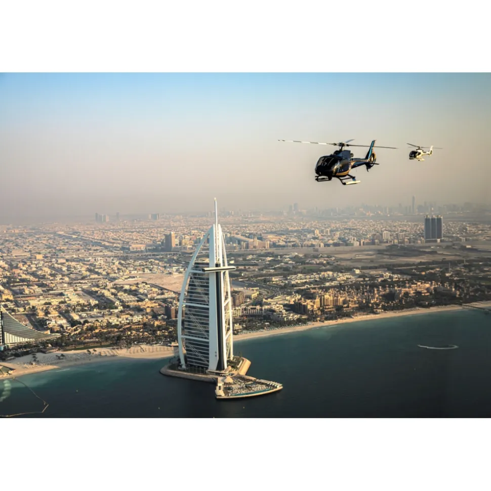 Experience a dramatic ascent from a modern manmade wonder to the historic Creek where Dubai was born. From Atlantis The Palm, cross the Arabian Gulf and fly over The Worlds Islands, before proceeding to Burj Khalifa, the world’s tallest tower. Take in the skyscrapers of Sheikh Zayed Road before marveling at Dubai Creek with its captivating heritage architecture. On the way back, pass Port Rashid, Union House and the Jumeirah Beach coastline until Burj Al Arab, before swerving inland to see Dubai Internet City, Jebel Ali Race Course, Emirates Living neighborhoods, Jumeirah Lake Towers and Dubai Marina.