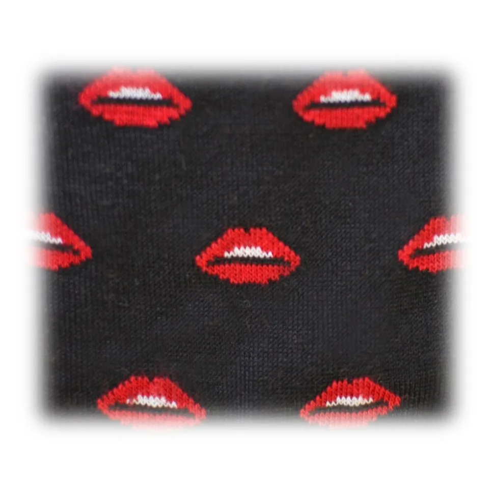 Fefè Napoli – Black Mouth Short Dandy Men’s Socks – Socks – Handmade in Italy – Luxury Exclusive Collection