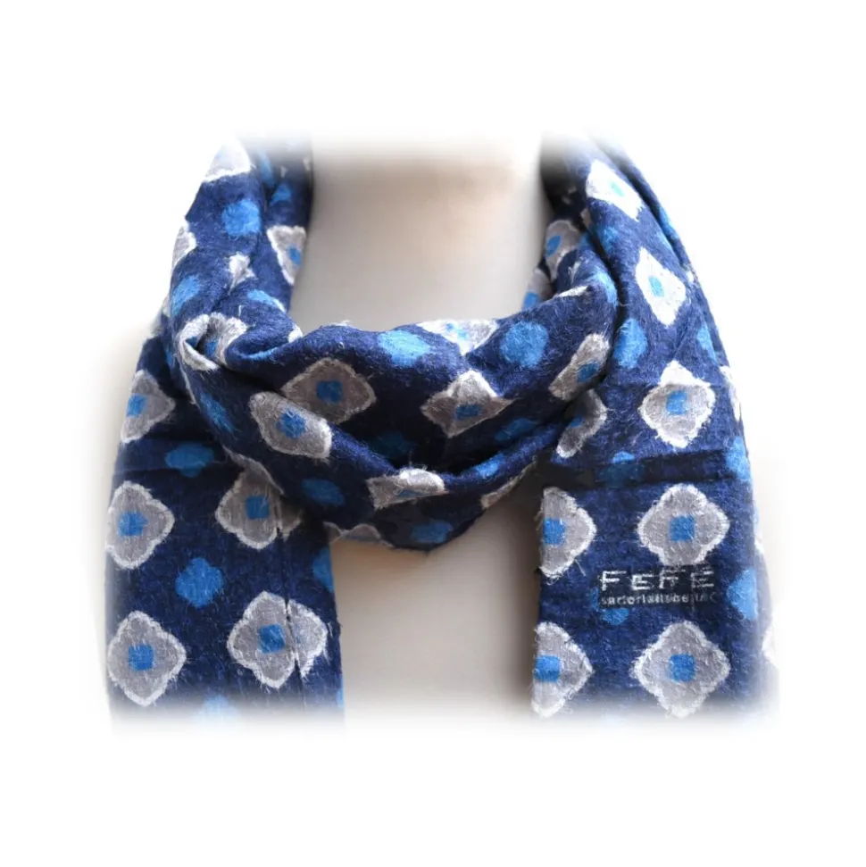 Fefè Napoli – Blue Flowers Dandy Silk Scarf – Scarves and Foulards – Handmade in Italy – Luxury Exclusive Collection
