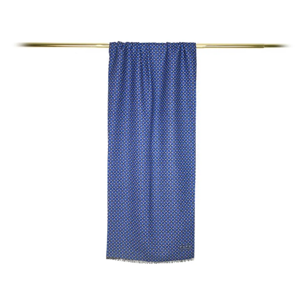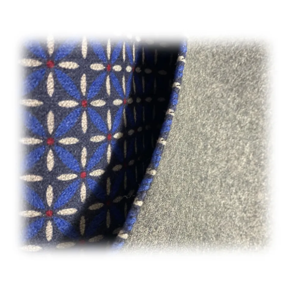 Fefè Napoli – Blue Flowers Seventy Double Silk Scarf – Scarves and Foulards – Handmade in Italy – Luxury Exclusive Collection
