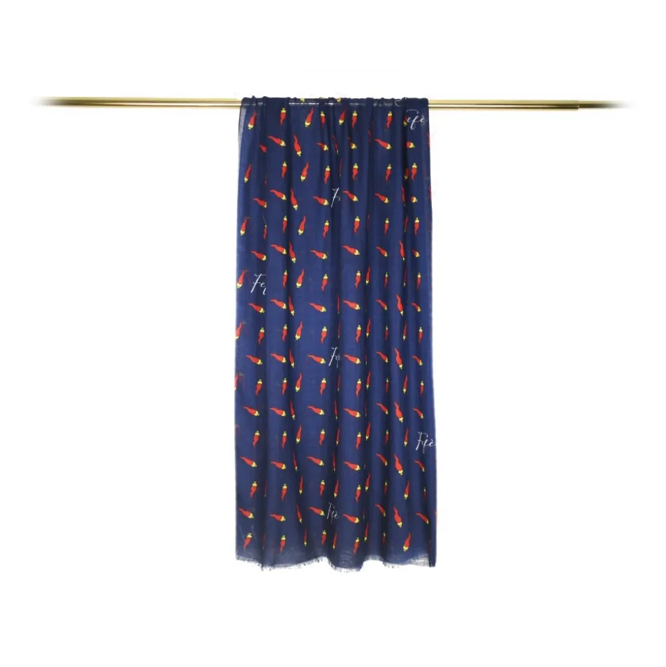 Fefè Napoli – Blue Lucky Horn Scaramantia Wool Scarf – Scarves and Foulards – Handmade in Italy – Luxury Exclusive Collection