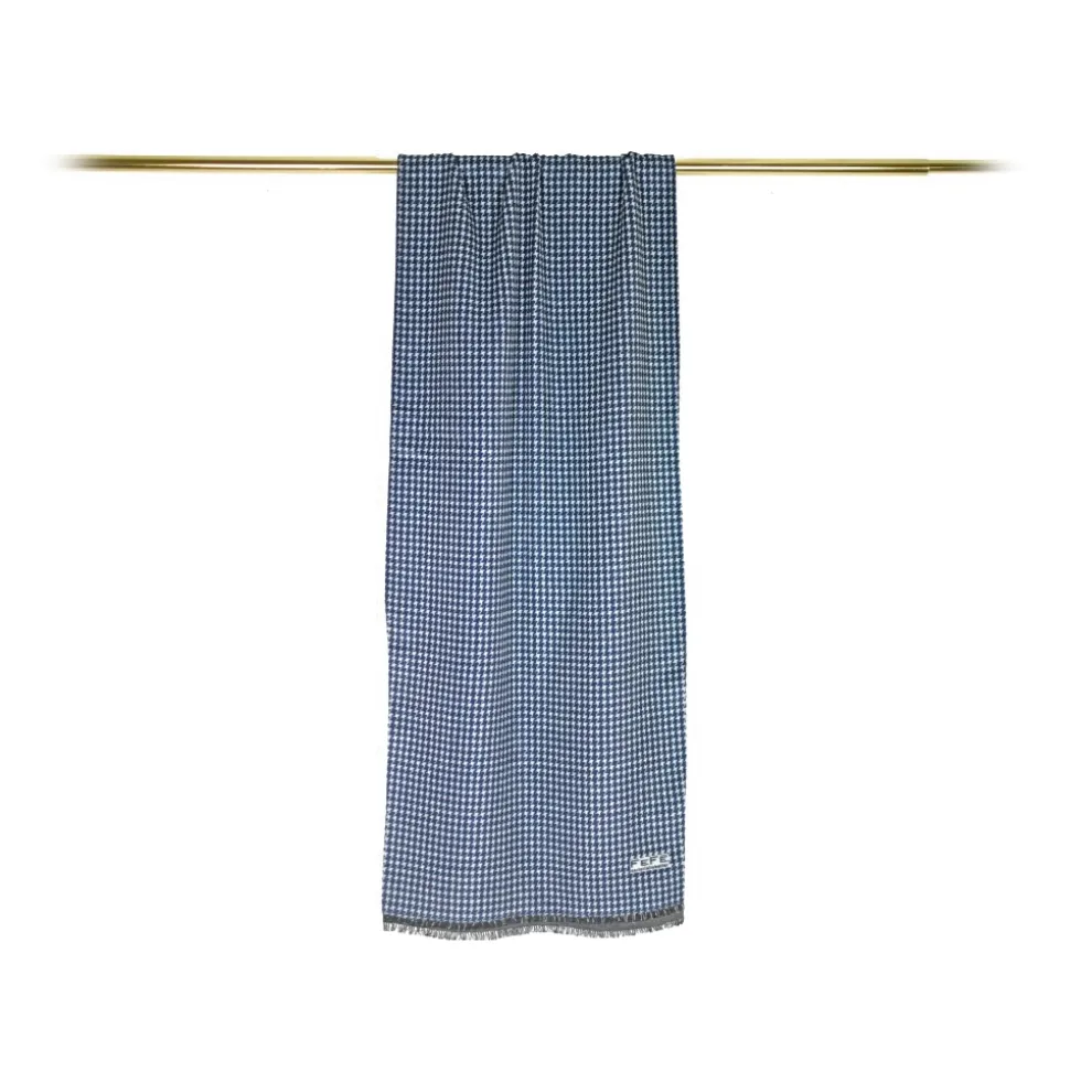 Fefè Napoli – Blue Pied De Poule Double Gentleman Scarf – Scarves and Foulards – Handmade in Italy – Luxury Exclusive Collection