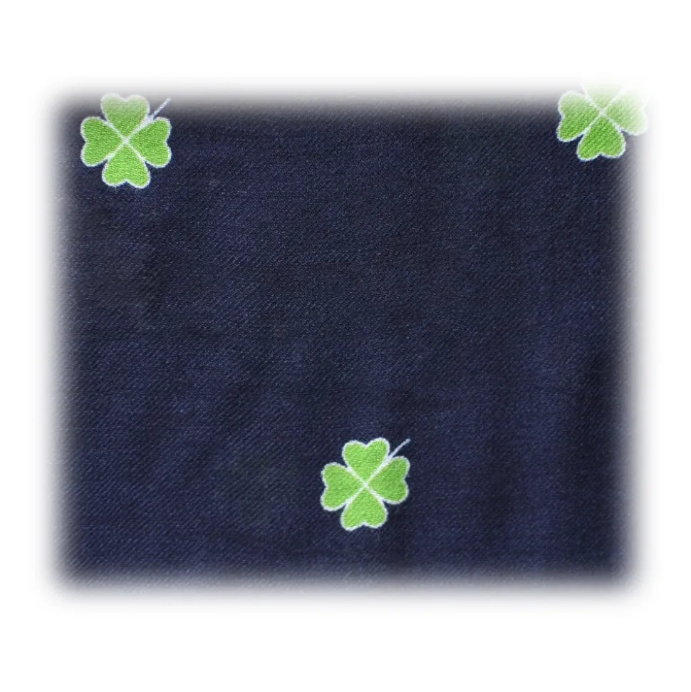 Fefè Napoli – Blue Quatre-foil Scaramantia Wool Scarf – Scarves and Foulards – Handmade in Italy – Luxury Exclusive Collection