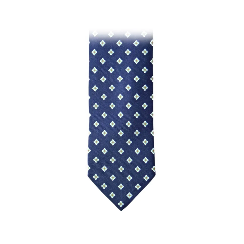Fefè Napoli – Blue Quatrefoil Gentleman Silk Tie – Ties – Handmade in Italy – Luxury Exclusive Collection