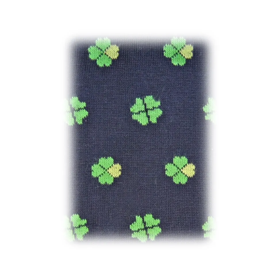 Fefè Napoli – Blue Quatrefoil Scaramantia Men’s Socks – Socks – Handmade in Italy – Luxury Exclusive Collection