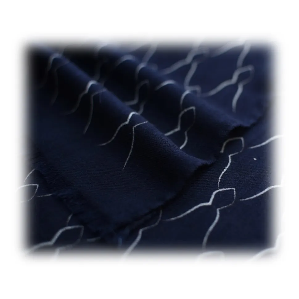 Fefè Napoli – Blue San Gennaro Scaramantia Wool Scarf – Scarves and Foulards – Handmade in Italy – Luxury Exclusive Collection