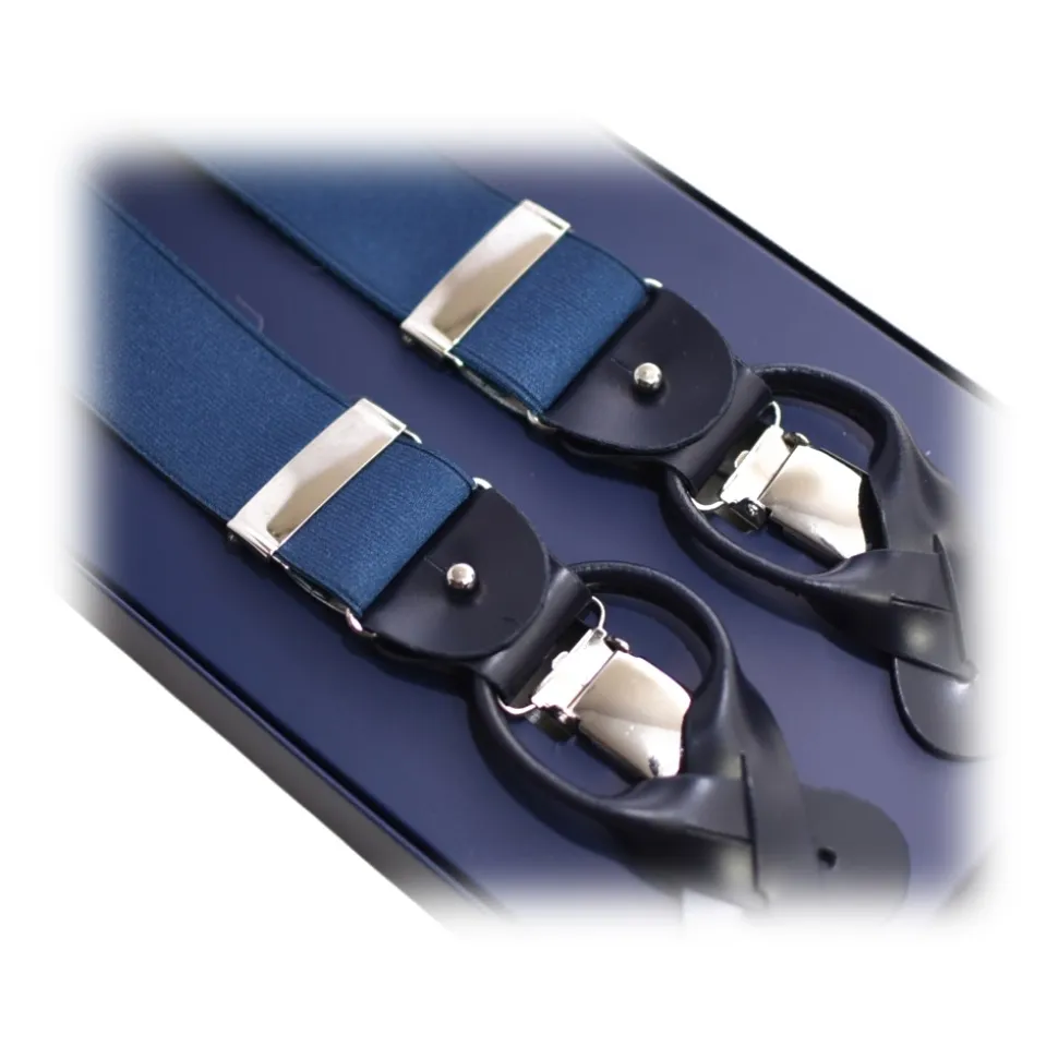 Fefè Napoli – Blue Satin Gentleman Suspenders – Braces – Handmade in Italy – Luxury Exclusive Collection