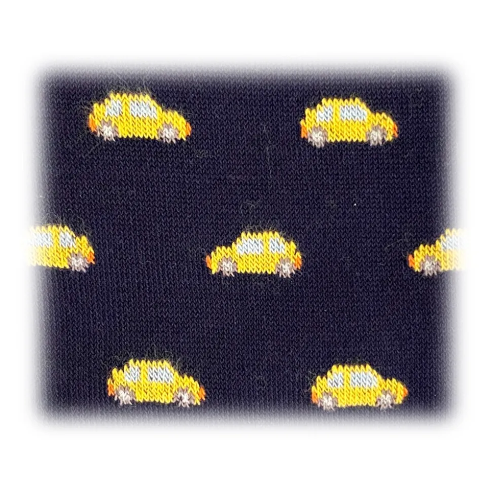 Fefè Napoli – Blue Yellow Cinquecento Short Dandy Men’s Socks – Socks – Handmade in Italy – Luxury Exclusive Collection