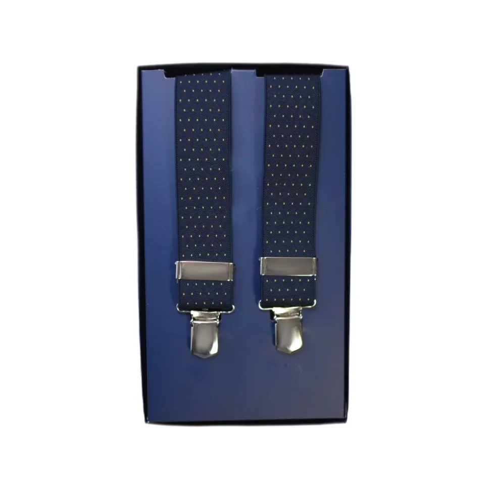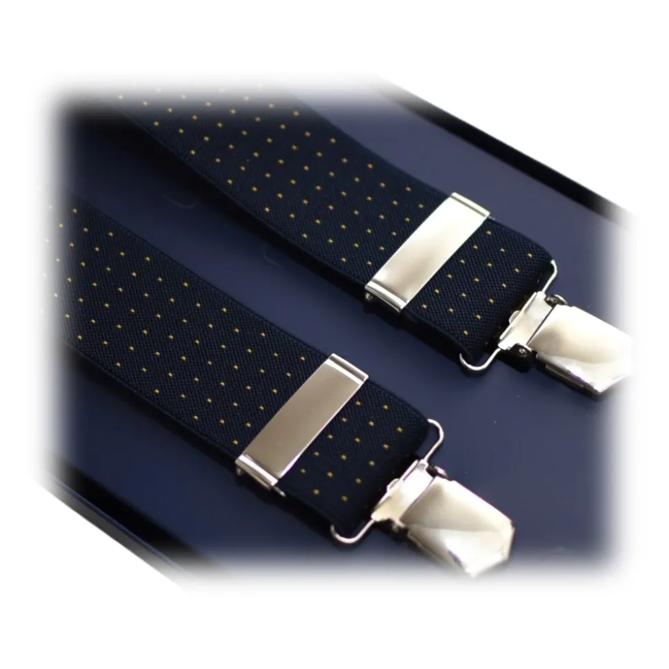 Fefè Napoli – Blue Yellow Pois Gentleman Suspenders – Braces – Handmade in Italy – Luxury Exclusive Collection