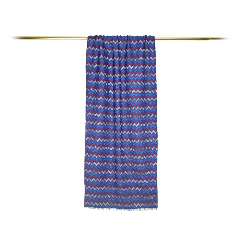 Fefè Napoli – Blue Zig-Zag Double Dandy Scarf – Scarves and Foulards – Handmade in Italy – Luxury Exclusive Collection