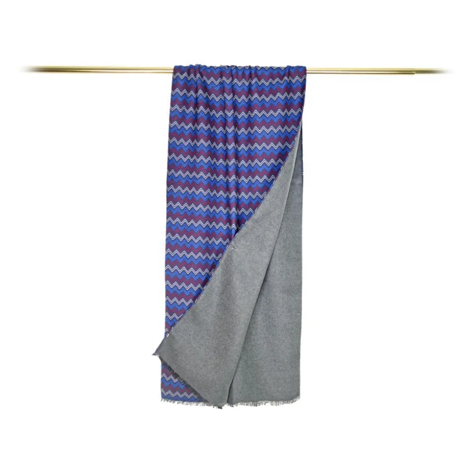 Fefè Napoli – Blue Zig-zag Double Dandy Silk Scarf – Scarves and Foulards – Handmade in Italy – Luxury Exclusive Collection