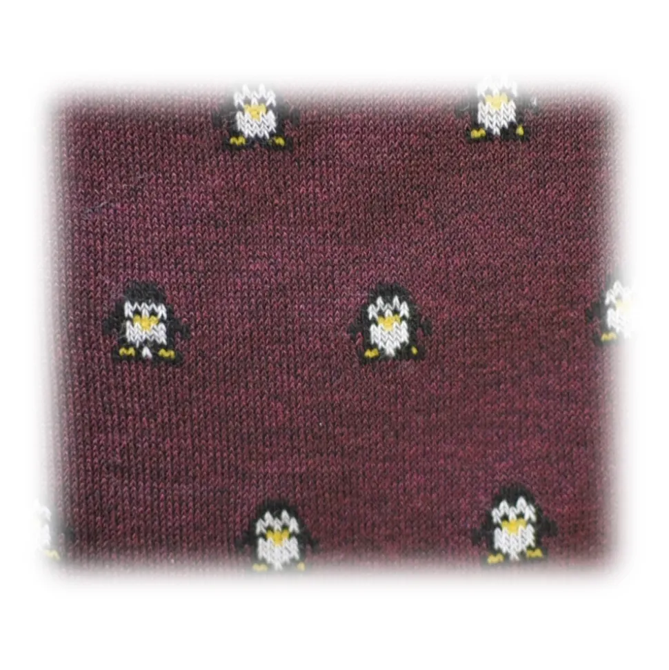 Fefè Napoli – Bordeaux Penguin Short Dandy Men’s Socks – Socks – Handmade in Italy – Luxury Exclusive Collection