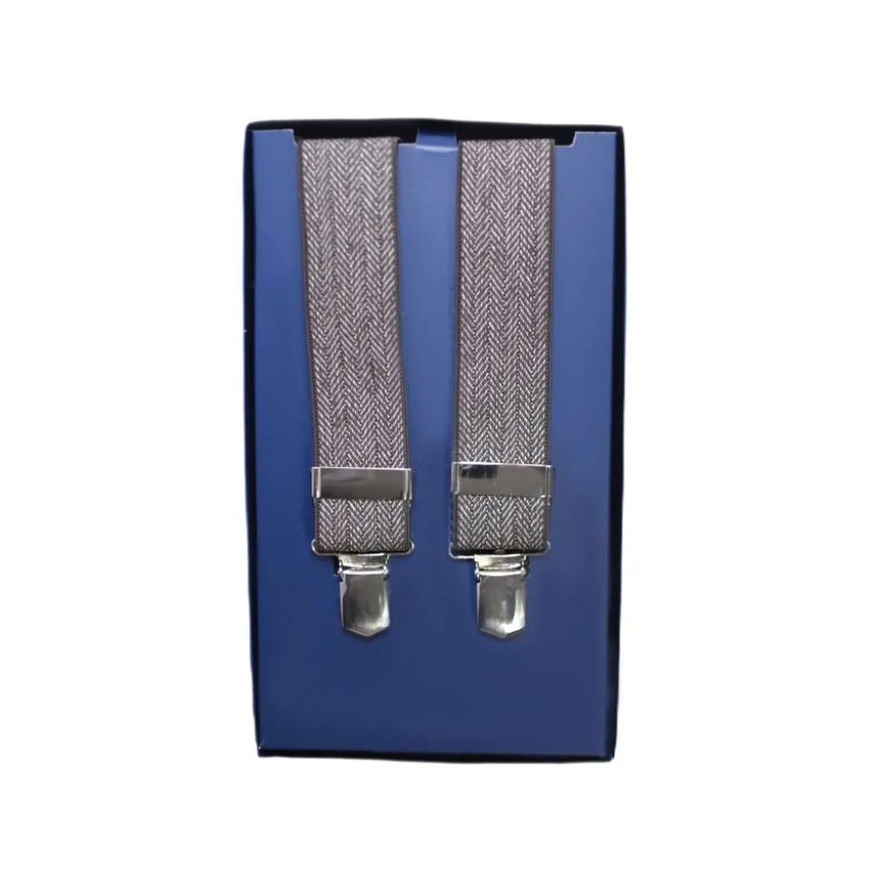 Fefè Napoli – Brown Herringbone Gentleman Suspenders – Braces – Handmade in Italy – Luxury Exclusive Collection