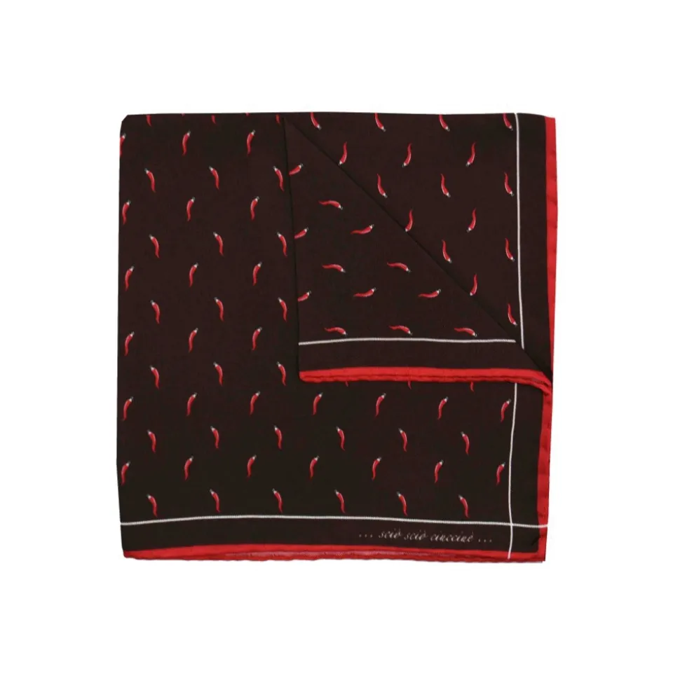 Fefè Napoli – Brown Lucky Horns Silk Scaramantia Pocket Square – Pocket-Square – Handmade in Italy – Luxury Exclusive Collection