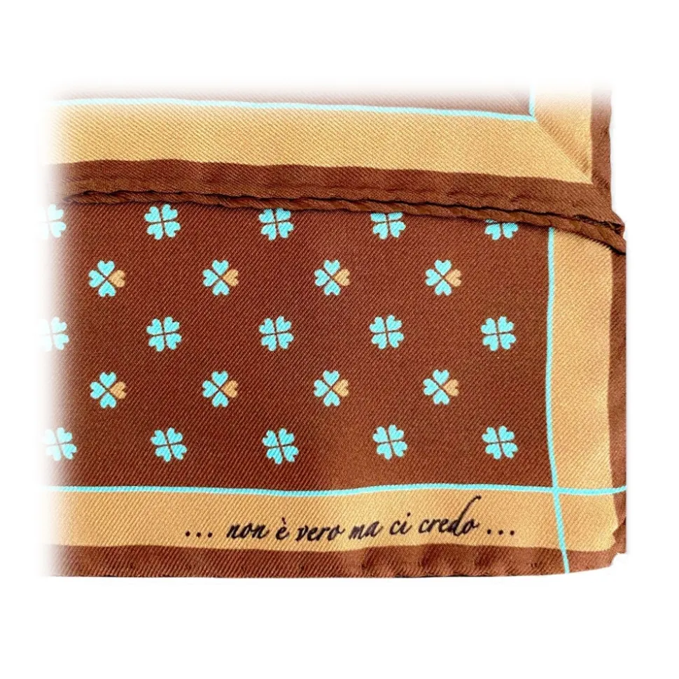 Fefè Napoli – Brown Quatre-Foil Silk Scaramantia Pocket Square – Pocket-Square – Handmade in Italy – Luxury Exclusive Collection
