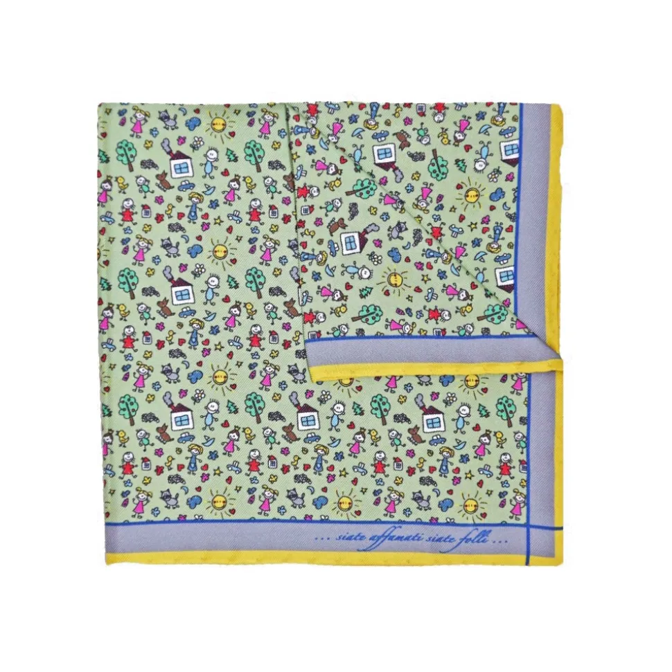 Fefè Napoli – Green Kids Silk Dandy Pocket Square – Pocket-Square – Handmade in Italy – Luxury Exclusive Collection