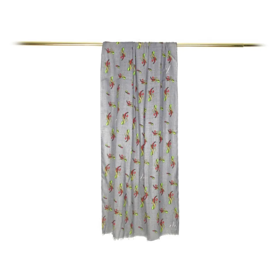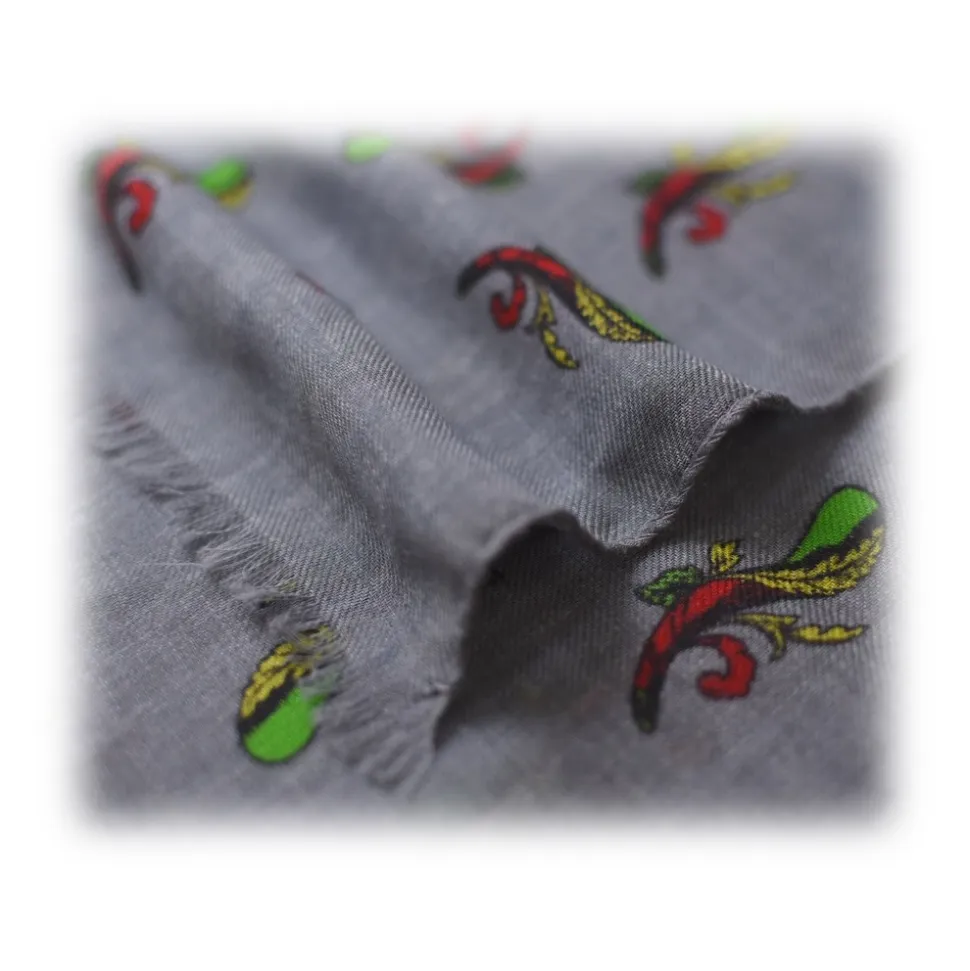 Fefè Napoli – Grey Ace of Sticks Scaramantia Wool Scarf – Scarves and Foulards – Handmade in Italy – Luxury Exclusive Collection