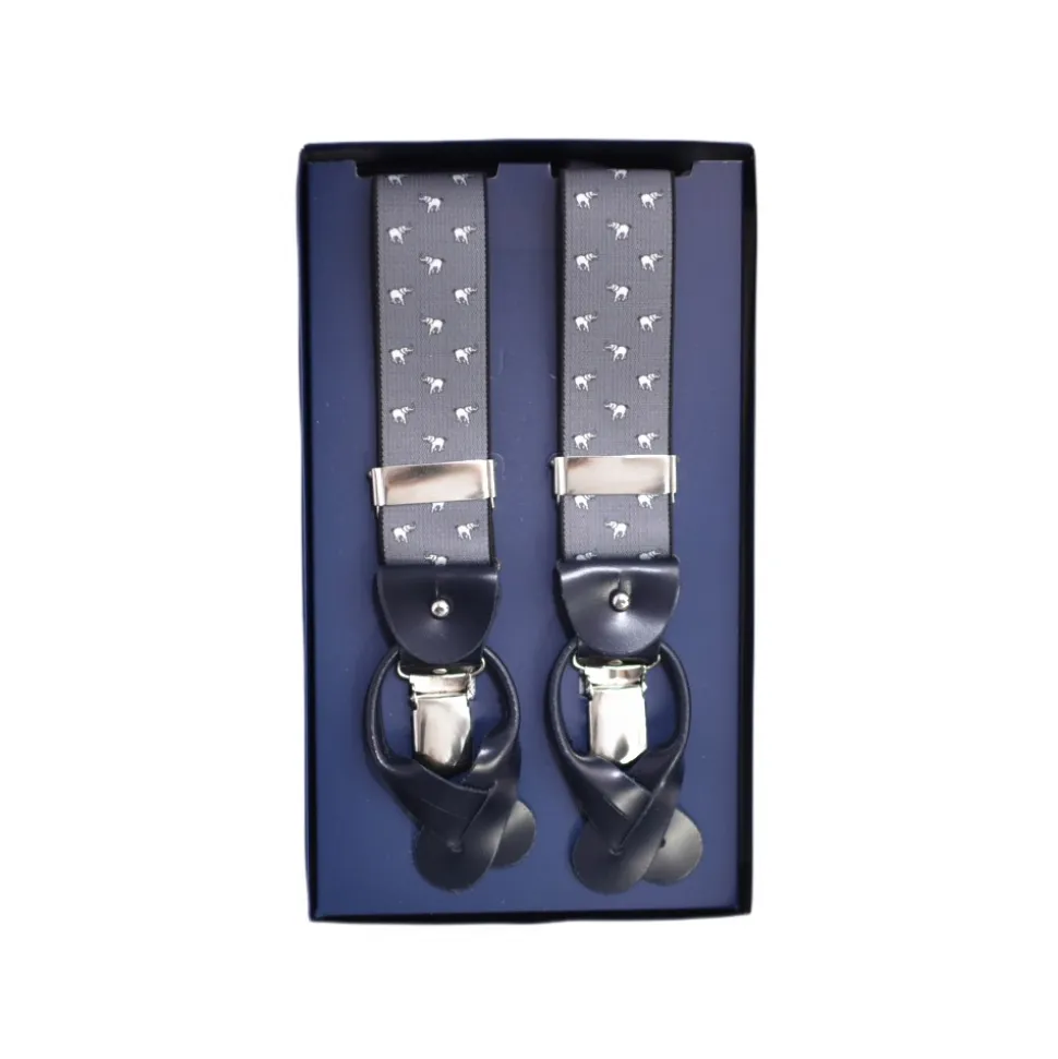 Fefè Napoli – Grey Elephant Dandy Suspenders – Braces – Handmade in Italy – Luxury Exclusive Collection