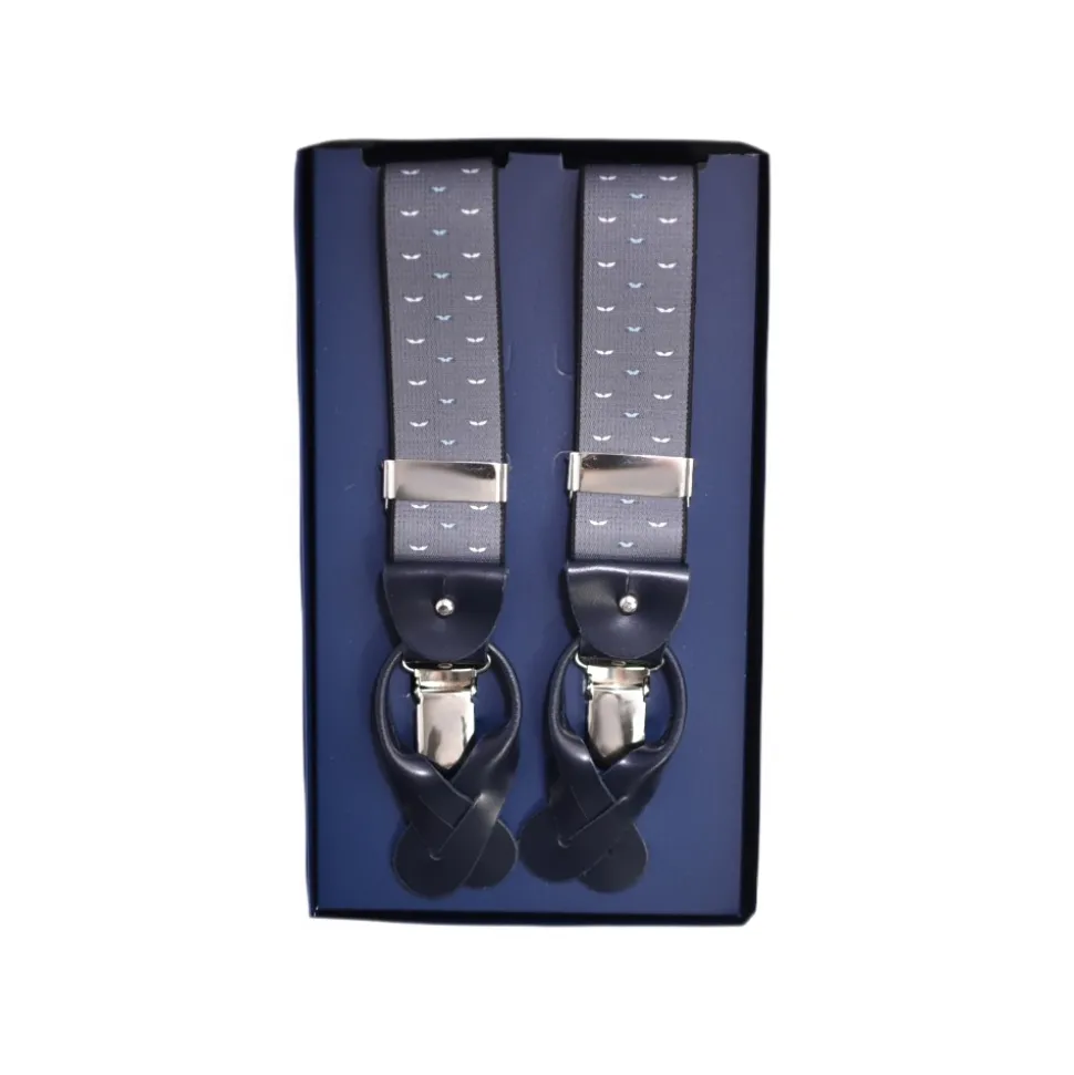 Fefè Napoli – Grey Mustache Dandy Suspenders – Braces – Handmade in Italy – Luxury Exclusive Collection