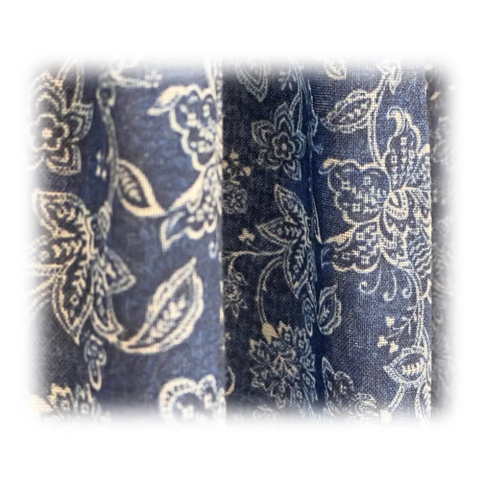Fefè Napoli – Light-Blue Flowers Wool Dandy Scarf – Scarves and Foulards – Handmade in Italy – Luxury Exclusive Collection