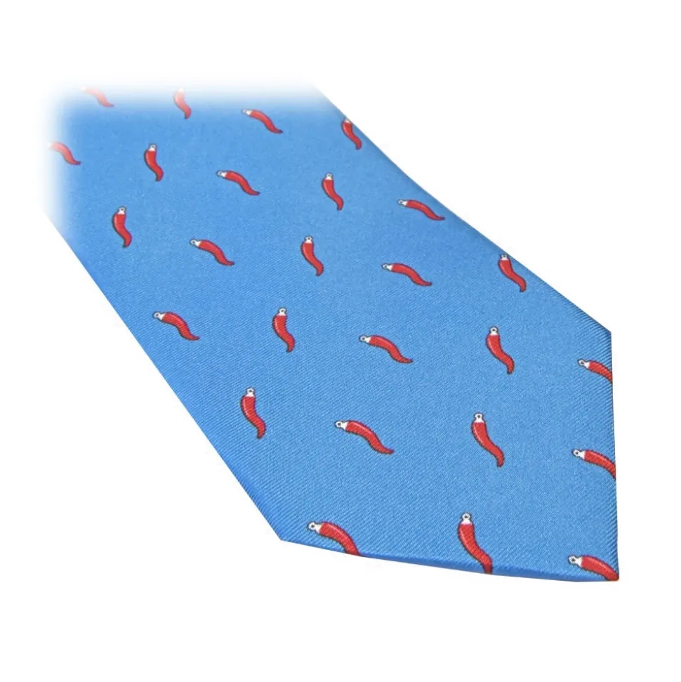Fefè Napoli – Light-Blue Lucky Horns Scaramantia Silk Tie – Ties – Handmade in Italy – Luxury Exclusive Collection