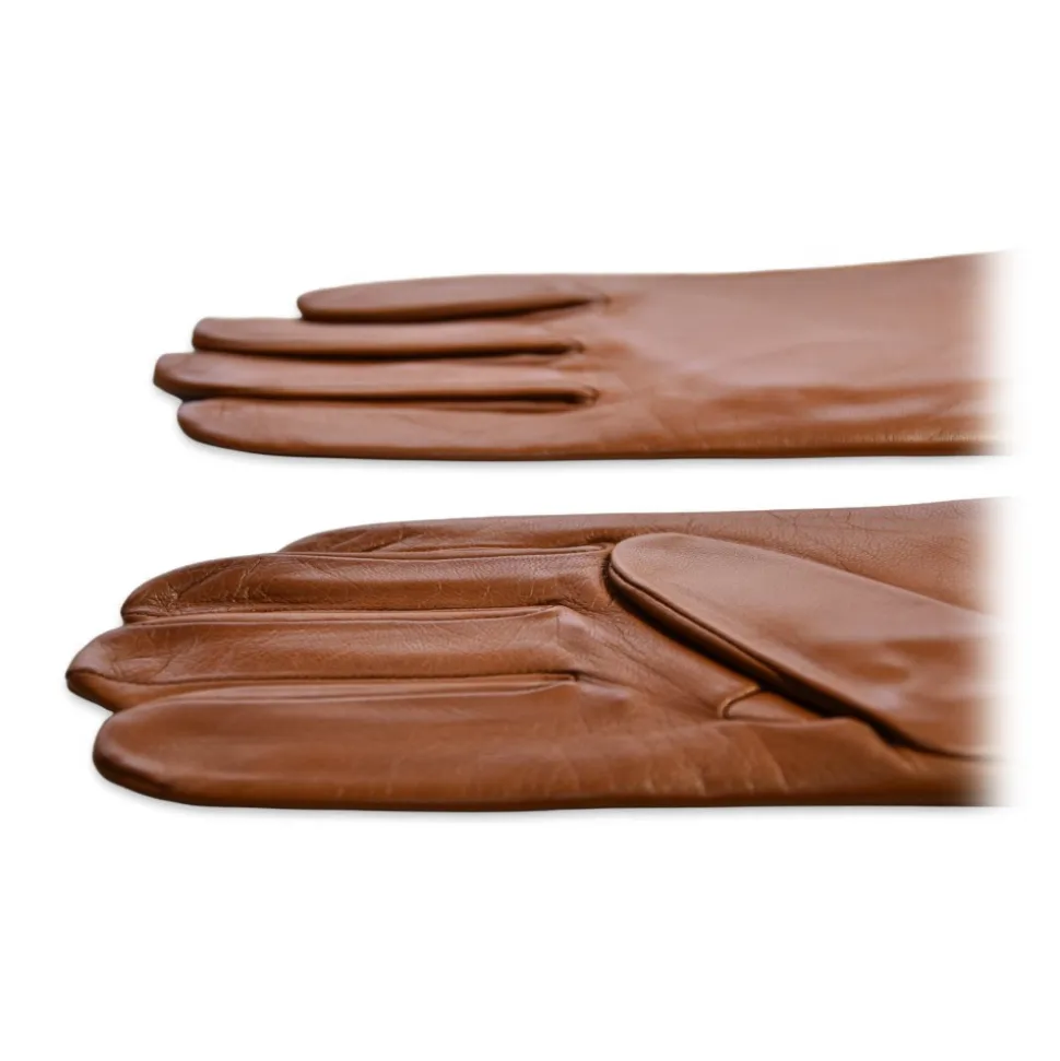 Fefè Napoli – Tobacco Leather Woman Gloves – Gloves – Handmade in Italy – Luxury Exclusive Collection