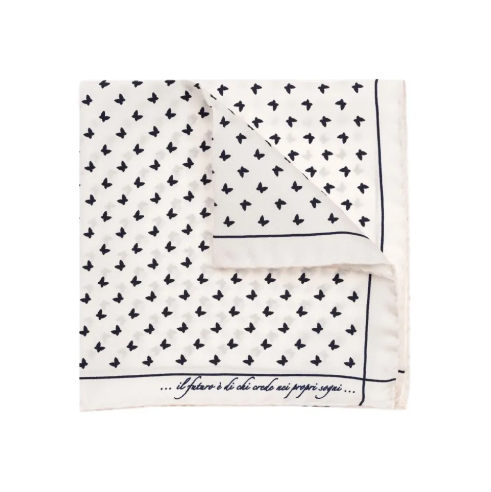 Fefè Napoli – White Butterfly Silk Dandy Pocket Square – Pocket-Square – Handmade in Italy – Luxury Exclusive Collection