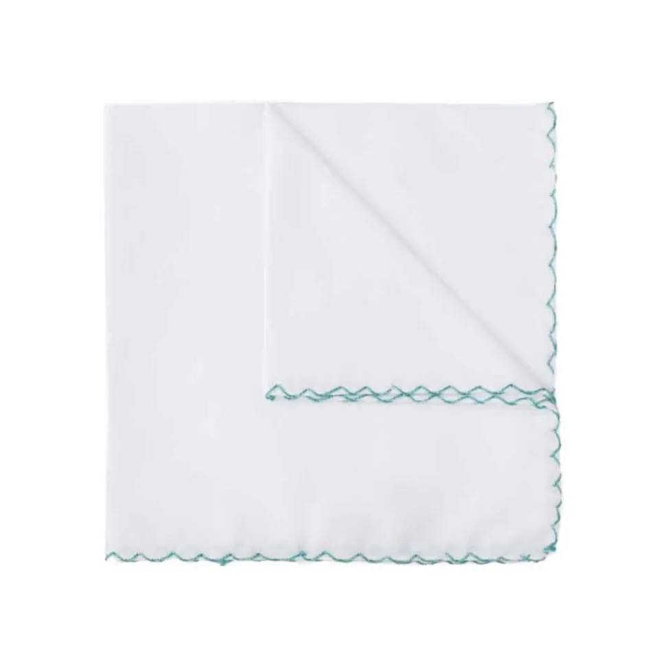 Fefè Napoli – White Cotton Green Embroidery Gentleman Pocket Square – Pocket-Square – Handmade in Italy – Luxury Exclusive Collection