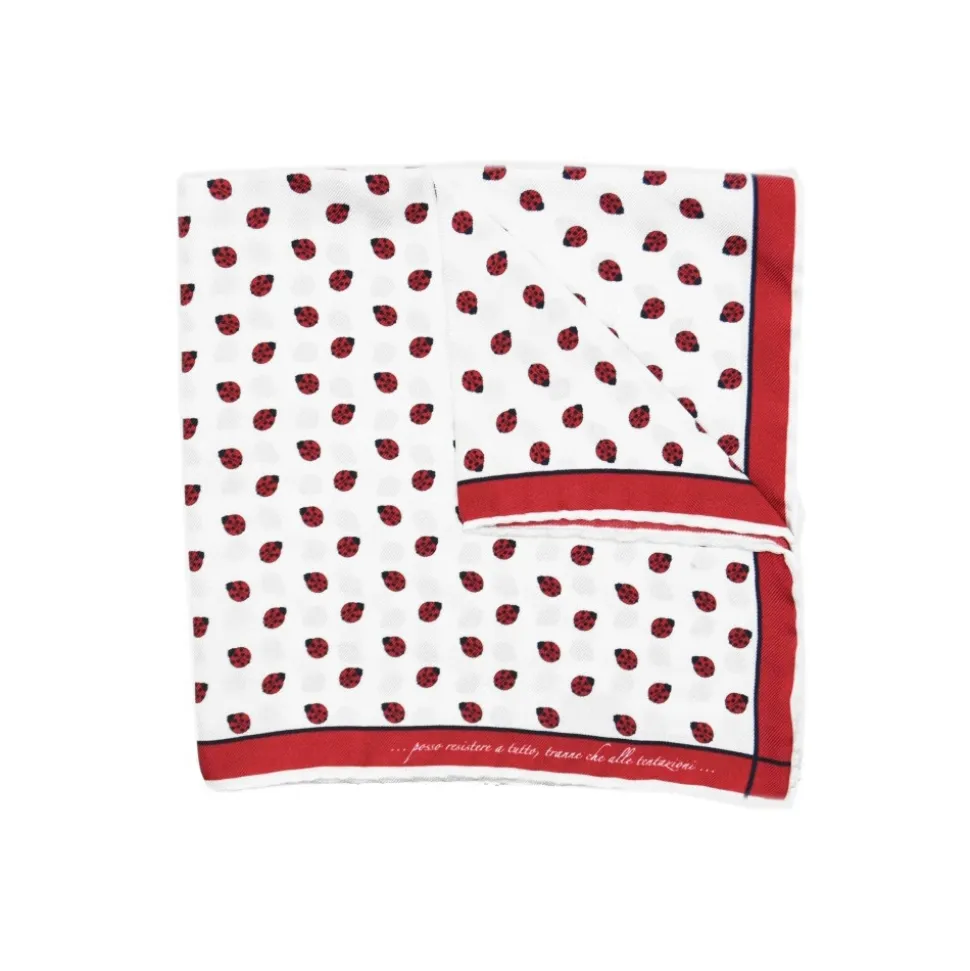 Fefè Napoli – White Ladybugs Silk Dandy Pocket Square – Pocket-Square – Handmade in Italy – Luxury Exclusive Collection