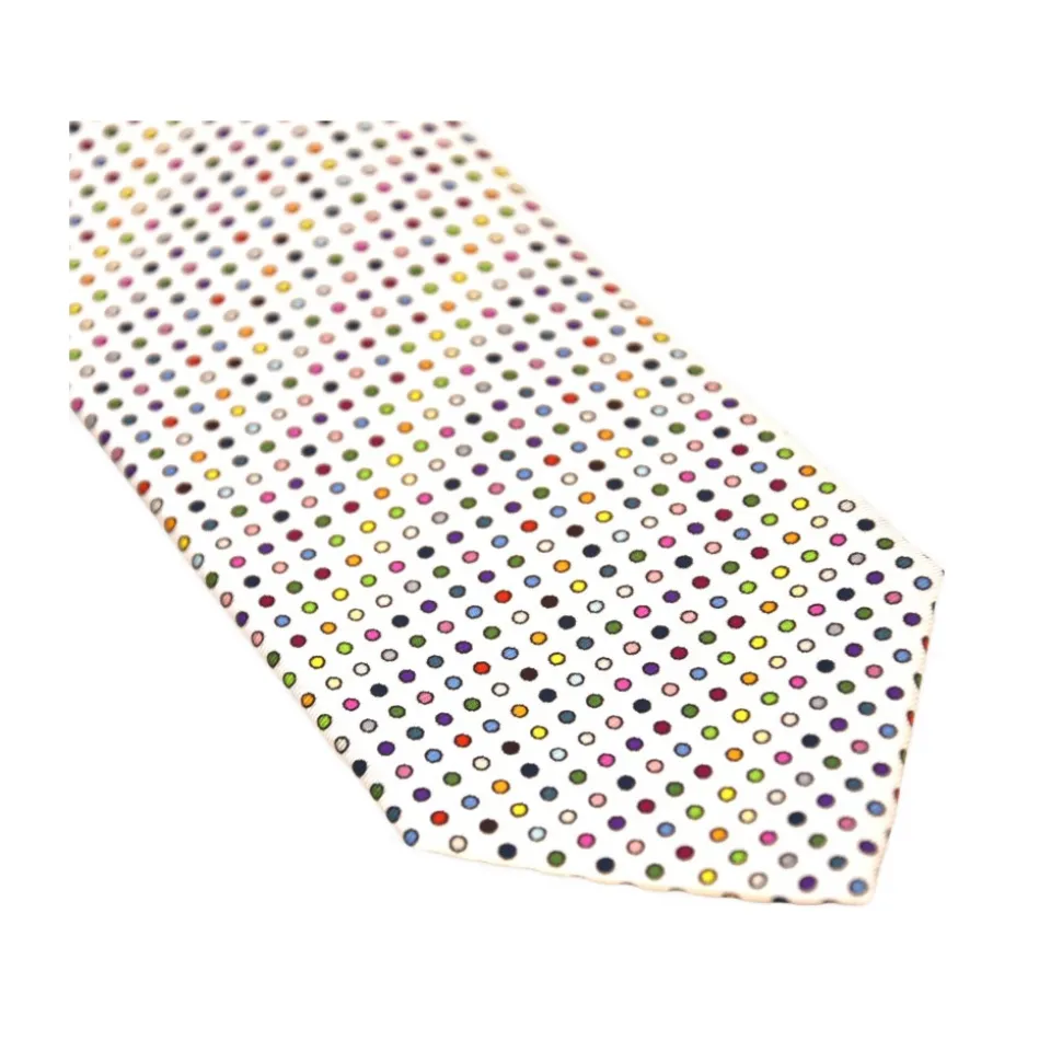 Fefè Napoli – White Multicolor Pois Gentleman Silk Tie – Ties – Handmade in Italy – Luxury Exclusive Collection