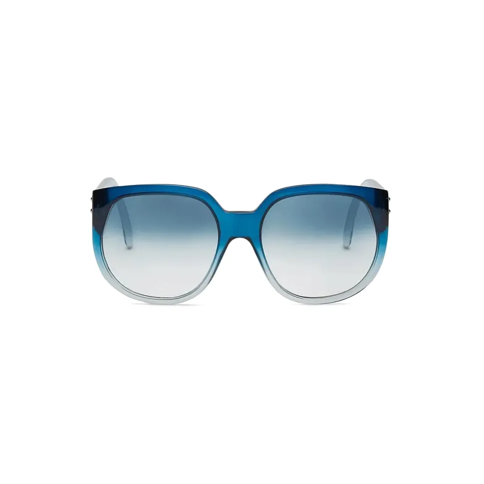 Vintage-inspired oversize round-shaped style presented during the Haute Couture fashion show in shaded blue injection-moulding, completed by temples decorated with golden studs and Fendi logo. Blue gradient lenses. Made in Italy.