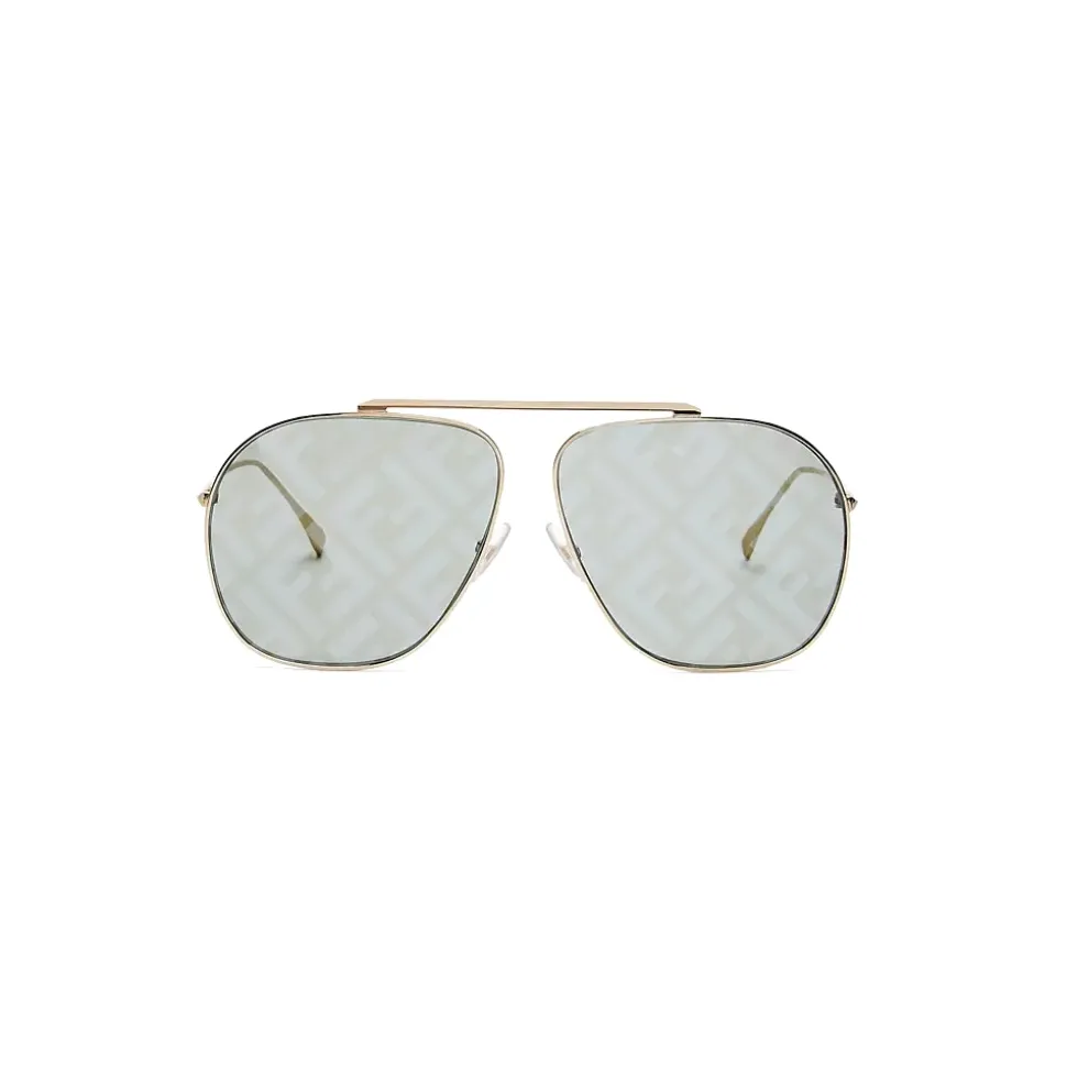 ’70s-inspired oversize pilot-shaped frame in gold-colored metal with green lenses and all-over silver mirror-effect FF logo. Adjustable nose pads. Made in Italy.